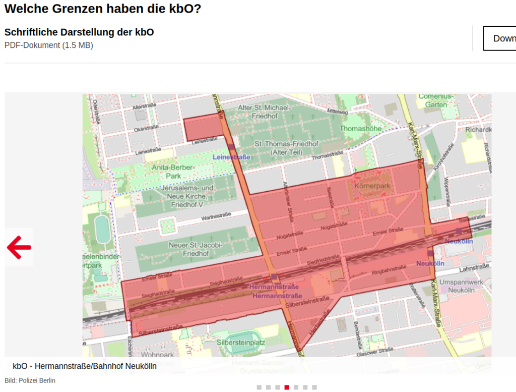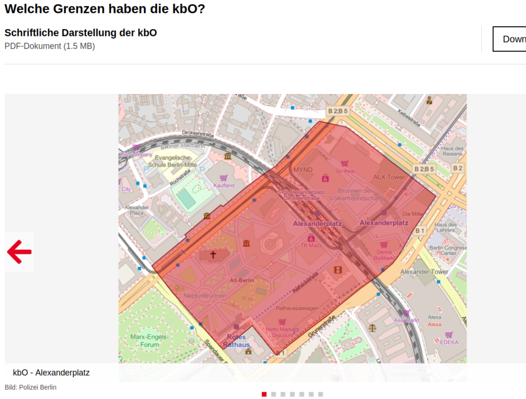 Am 11. Februar 2026 wurde veröffentlicht, wo genau sich die sogenannten „kriminalitätsbelasteten Orte“ (kbO) in Berlin befinden -zuvor wurde die genaue Lage aus “polizeitaktischen Gründen” geheim gehalten (mehr Screenshots zu den kbOs unten bzw. gibt es auch hier eine detaillierte Übersicht).